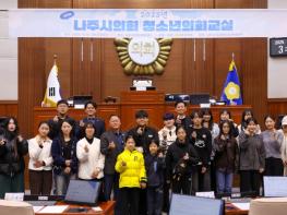 나주시의회는 12일 나주시학교밖청소년지원센터 청소년들의 참여로 ‘2025년 제3회 나주시의회 청소년 의회교실’을 성황리에 마쳤다. 나주시학교밖청소년지원센터 청소년들은 하루 동안 나주시의회 시의원