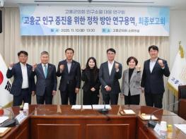 고흥군의회 의원연구단체인 ‘고흥군의회 인구소멸 대응 연구회’는 지난 11월 10일 군의회 소회의실에서 ‘고흥군 인구 증진을 위한 정착 방안 연구용역’ 최종보고회를 개최하고 올해 연구활동을 성공적으