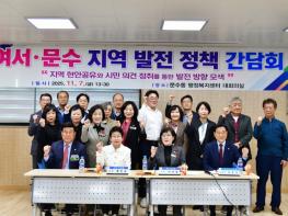 여수시의회는 지난 11월 7일 문수동 행정복지센터 대회의실에서 ‘여서‧문수 지역 발전 정책 간담회’를 개최했다.이번 간담회는 지역의 주요 현안을 공유하고 주민과 함께 실질적인 발전 방향을 모색하기