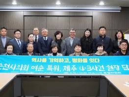 순천시의회 여수·순천 10·19사건 특별위원회(위원장 최미희)는 11월 4일 제주 4·3 평화공원과 위령탑을 찾아 참배한 후, 제주 4·3 희생자 유족회와 간담회를 개최해 두 지역의 과거사 현안 해결을 위한 협력