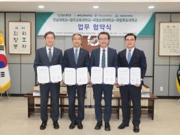 전남대학교는 5월 19일 오후 1시 30분, 대학본부 5층 접견실에서 광주교육대학교, 국립목포대학교, 국립순천대학교와 함께 지역과의 상생발전을 위한 업무협약을 체결했다.이번 협약은 AI 기반 교육 생태계