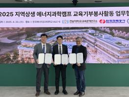 전남대학교 교육문제연구소는 지난 4월 23일 한국전력공사 나주지사 및 한국에너지공과대학교와 함께 지역 청소년을 위한 에너지 특화형 교육 봉사활동 운영을 위해 3자간 업무협약(MOU)을 체결했다고 밝혔