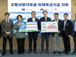 재광영암군향우회가 18일 영암군청을 찾아 (재)영암군미래교육재단에 인재육성기금 200만원, 영암군에 고향사랑기부금 300만원을 기부했다. 이날 전달된 인재육성기금은 향우회원들이, 고향사랑기부금은 나