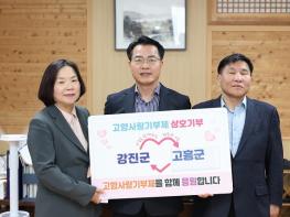 강진군청과 고흥군청 재무과 임직원들이 지난 3일 고향사랑기부금 270만원을 상호 지역에 기부하며 두 지자체 간 응원의 뜻을 모았다.이번 기탁식에 이병철 강진부군수, 정국균 고흥 재무과장이 참여해 양