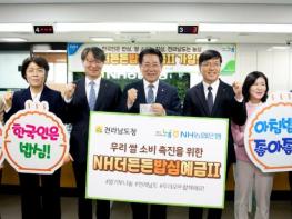 김영록 전라남도지사가 3월 31일 전국 광역단체장 가운데 최초로 NH농협은행의 ‘NH더든든밥심예금Ⅱ’에 가입했다.이날 전남도청 농협출장소에서 진행된 가입행사엔 이광일 농협중앙회 전남본부장, 류종필