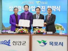 목포시는 지난 17일 신안군과 함께 목포시청 상황실에서 ‘목포·신안 상생협력사업 업무협약’을 체결했다. 이날 협약식에는 양 시·군 단체장과 관계 부서 공무원 등 26명이 참석했다.시는 그동안 신안군과