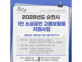순천시는 지역 내 1인 소상공인의 경영안정과 사회안전망 강화를 위해 ‘2026년 1인 소상공인 고용보험료 지원사업’을 19일부터 본격 시행한다고 밝혔다. 이번 지원사업은 2026년 1월 납부분부터 소급 적용