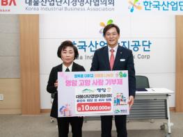 대불산단경영자협의회가, 10일 한국산업단지공단 전남서부지사에서 영암군에 고향사랑기부금 1,000만원을 기부했다. 유인숙 ㈜유일 대표의 제15대 대불산단경영자협의회장 취임식 현장에서, 협의회는 지역과