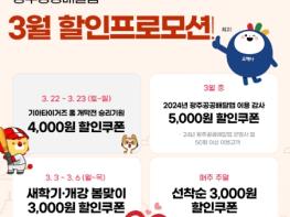 광주광역시는 매주 토·일요일 3000원 할인쿠폰을 제공하던 광주공공배달앱 할인행사를 3월 한 달간 봄맞이 최대 5000원까지 제공하는 등 특별할인 프로모션을 진행한다. 이번 행사는 경제회복 3박자 정책인