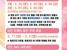 강진군이 제53회 강진 청자 축제 기간 강진 상권 활성화를 위해 오는 2월 22일 토요일부터 23일 일요일, 2월 28일 금요일부터 3월 2일 일요일까지 5일간 오후 1시부터 오후 5시까지 강진읍시장 종합동에서