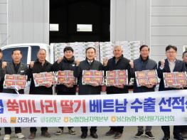 프리미엄 딸기 명가 담양군이 올해 첫 딸기를 수출했다. 담양군은 지난 16일 봉산농협 산지유통센터에서 첫 선적식을 열고 딸기 256kg을 베트남으로 수출했다고 밝혔다. 담양군은 딸기 수출 확대를 위한