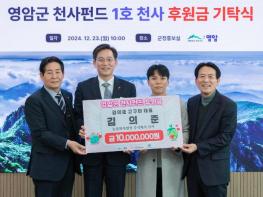 김의준 김의준고구마 대표이사가 23일, 영암군청을 찾아 ‘천사펀드 조성사업’에 1,000만원을 출연하며 ‘영암군 1호 천사’로 등극했다. 영암군의 천사펀드 조성사업은, 경제적 어려움을 겪는 영암군민에