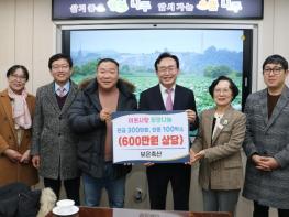 전라남도 나주시는 노안면에 위치한 친환경 돼지고기 가공 전문업체인 보은축산에서 지난 9일 취약계층과 복지시설을 위해 써달라며 현금 300만원과 함께 한돈(1㎏) 100박스, 두바이 초콜릿 400개를 기탁했