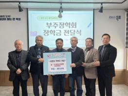 부주동 부주장학회는 지난 10일 부주동 행정복지센터 2층 소회의실에서 장학금 전달식을 열고, 고등학생 5명과 대학생 5명에게 총 750만원의 장학금을 전달했다. 이번 장학금은 고등학생에게 각 50만원, 대