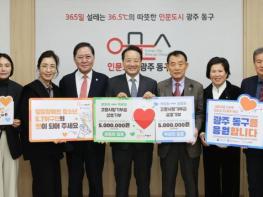 광주 동구 고향사랑기부제에 연말을 맞아 고액 기부가 이어져 눈길을 끈다. 동구는 최근 조현주 남광주한의원장(동구 한의사협회 회장)을 비롯해 김영 한국여성경제인연합회 전남지회장과 김 회장의 배우자