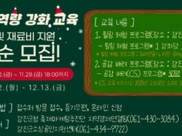 강진군은 지역 소상공인과 예비창업자의 역량 강화를 위한 교육으로 힐링 체험 프로그램과 공감 배려 프로그램을 오는 12월 진행한다고 26일 밝혔다. 이번 교육은 급변하는 경영 환경에 적응하고 사업의 자