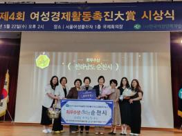 순천시는 지난 22일 한국여성인력개발센터 연합이 주최하는 '제4회 여성경제활동촉진대상(大賞)'공모에서‘최우수상’을 수상했다고 밝혔다.여성경제활동 촉진대상은 여성의 경제활동 촉진에 기여한 정책·제