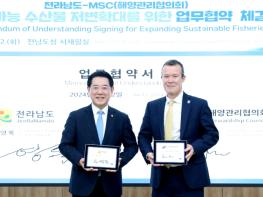 전라남도는 2일 해양관리협의회(MSC)와 지속가능한 수산물 저변 확대를 위한 상호협력 업무협약을 했다.협약식에는 김영록 전남도지사, 해양관리협의회의 루퍼트 호우스 글로벌 CEO와 서종석 한국대표, 전남