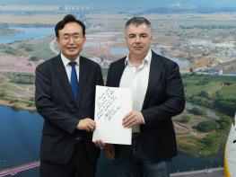 ‘나주글로벌에너지포럼 2025(NGEF 2025)’ 참가를 위해 나주를 방문한 2010년 노벨물리학상 수상자 콘스탄틴 노보셀로프 교수(싱가포르 국립대)가 16일 오후 나주시청을 방문해 윤병태 시장과 환담했다.윤