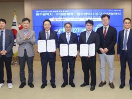 광주광역시는 15일 시청 비즈니스룸에서 ㈜대웅제약, 광주 동구와 함께 ‘광주시 인공지능산업 생태계 조성을 위한 업무협약’을 체결했다.이번 협약은 광주 인공지능(AI) 생태계를 기반으로 디지털 헬스케