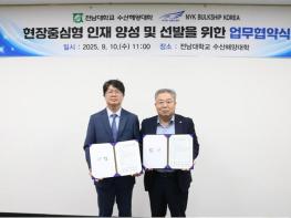 전남대학교 수산해양대학(학장 서호영)은 지난 9월 10일 서호영 학장과 NYK BULKSHIP KOREA 서바다 대표이사가 참석한 가운데 ‘현장중심형 인재 양성 및 선발’ 업무협약을 체결했다고 밝혔다.이번 협약은