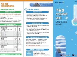 농림축산식품부는 대설, 한파 등 겨울철 재해로 인한 농업부문 피해 최소화를 위해 '2023 겨울철 농업재해대책'을 발표했고, 재해대책상황실을 설치하여 내년 3월 15일까지 피해 예방·경감 및 복구지원 대