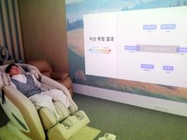 # 광주광역시청 1층 시민대화방 한 켠에 자리한 ‘스트레스 샤워실’. 안마의자가 놓인 부스형 공간에 들어서면 사용자는 패치를 가슴에 붙이고 심박변이도를 체크한다. 이곳에서는 신체지수를 체크하고 분