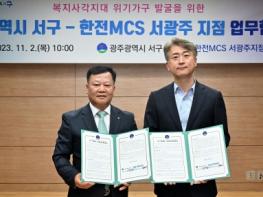 광주 서구는 2일 서구청 이음홀에서 한전MCS 서광주지점과 복지사각지대 위기가구 발굴·지원을 위한 업무협약을 체결했다. 이와 함께 한전MCS 전력매니저 25명을 명예사회복지공무원으로 위촉했다. 양 기관