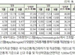 국토교통부는 ’23년 3분기 전국 건축 인허가 현황을 집계한 결과, 전년 동기 대비 인허가 면적은 32.8% 감소, 착공 면적은 44.2% 감소했으나, 준공 면적은 8.1% 증가했다고 밝혔다.’23년 3분기 기준 전국