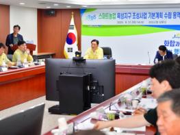 장성군이 최근 군청 상황실에서 ‘스마트농업 육성지구 조성사업 기본계획 수립용역 중간보고회’를 열었다.김한종 장성군수와 심민섭 장성군의회 의장, 한국농어촌공사 전남본부·장성지사 관계자, 지역 농
