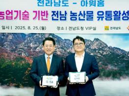 전라남도와 한화 아워홈은 25일 도청에서 ‘스마트 재배관리 솔루션’을 적용한 농산물의 안정적 생산과 유통 활성화를 위한 업무협약(MOU)을 했다.협약식에는 김영록 전남도지사, 김태원 한화 아워홈 대표