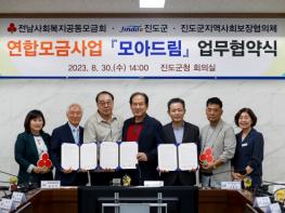 진도군이 지난 30일 진도군청 회의실에서 연합모금사업 ‘모아드림’ 업무협약을 체결했다.연합모금사업 ‘모아드림’은 진도군-전남사회복지공동모금회-진도군 지역사회보장협의체 등 민?관이 함께 참여해