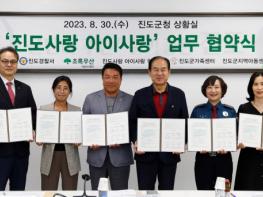 진도군이 지난 30일 진도군청 회의실에서 ‘진도사랑 아이사랑’ 업무협약식을 가졌다.‘진도사랑 아이사랑’ 업무협약은 전라남도 최초로 아동복지 혁신을 위한 지역 밀착형 민관통합모델인 ‘진도사랑 아