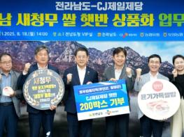 전라남도와 CJ제일제당, 농협유통, 보성·강진통합RPC는 18일 전남도청에서 새청무 쌀 활용 햇반 출시를 통해 안정적 원료곡 공급부터 소비 활성화까지 협력하는 업무협약을 했다.협약식엔 김영록 전남도지사