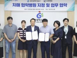 광주 동구는 최근 치매 조기 검진 체계 구축을 위해 관내 소재 ‘동명병원’을 치매 협약 병원으로 지정했다고 밝혔다. 이번 협약식은 임택 구청장, 정찬영 동명병원 대표원장 등이 참석한 가운데 치매 발견