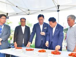 장성군이 25일 남면 분향리에서 신품종 방울토마토 ‘티에스(TS)샛별’ 품평회를 열었다.‘TS샛별’은 ㈜부농종묘가 개발한 대추형 방울토마토다. 반점위조바이러스(TSWV) 등 병해에 강한 복합 내병계 품종
