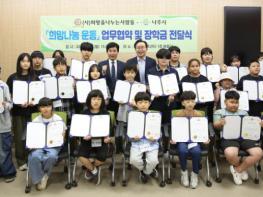 전라남도 나주시는 지난 2일 나주시가족센터 배움실에서 사단법인 희망을 나누는 사람들과 ‘2025년 희망나눔 장학금 후원사업’ 업무협약(MOU)을 체결하고 장학금 전달식을 가졌다.이날 협약 및 전달식에는