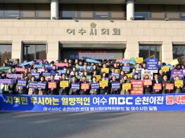 여수MBC 순천이전을 저지하기 위한 여수시민들의 외침이 도심 한가운데 울려 퍼졌다.15일 여수시에 따르면, 이날 오후 3시 여수시와 여수시의회, 시민사회단체로 구성된 ‘여수MBC 순천이전 반대 범시민대책