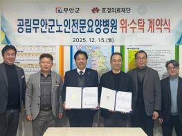 전남 무안군은 15일 의료법인 효경의료재단과 공립무안군노인전문요양병원의 민간 위·수탁 운영 계약을 체결했다.이날 계약에 따라 효경의료재단은 2026년 1월 20일부터 2031년까지 5년간 공립무안군노인전