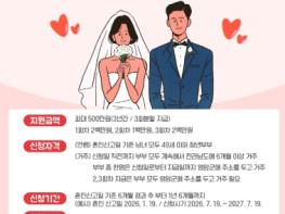 영암군이 청년부부에게 최대 500만원을 지원한다. ‘2026 청년부부 결혼장려금 지원사업’에 따른 이 지원은, 신혼부부 경제 부담 완화, 청년 인구 유입 및 지역 정착을 위한 것. 결혼장려금은 3년간 3회로
