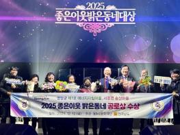 영암군 송산마을이 12일 광주광역시 조선대학교 해오름관에서 열린 ‘2025 좋은이웃 밝은동네’ 시상식에서 공로상을 받았다.좋은이웃 밝은동네는 KBC문화재단이 주관하고 전라남도가 후원하는 지역 공동체