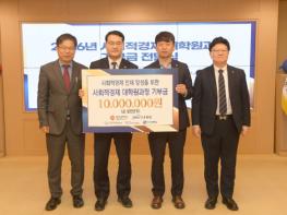 광주지역 사회적기업인 ㈜다우환경이 광주시가 추진 중인 ‘사회적경제 대학원과정 지원사업’을 후원하는 기부금을 전달했다.광주광역시는 27일 시청 비즈니스룸에서 ‘사회적경제 대학원과정 지원사업 기