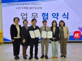 김제시립도서관은 지난 18일 도서관 상상누리터 1층에서 김제시 성덕우체국과 함께 독서문화 진흥을 위한 ‘느린우체통’ 설치 및 운영 협약을 체결했다고 밝혔다.이번 협약은 지역 내 유관 기관 간 협력체