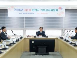 천안시가 기부 금품의 투명한 관리와 나눔 문화 확산을 위해 올해 첫 기부심사위원회를 열고 1억 3,000여만 원 상당의 기탁 성금을 의결했다. 천안시는 지난 27일 시청 중회의실에서 ‘2026년 제1차 기부
