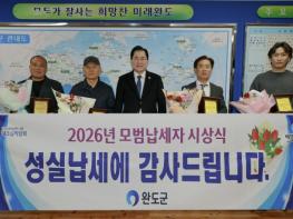 완도군에서는 성실한 납세 문화 조성에 앞장서고 재원 확보에 기여한 모범 납세자(법인 2개소, 개인 2명)와 성실 납세자(개인 100명)를 선정했다.모범 납세자는 ‘완도군 모범 납세자 등의 지원에 관한 조례