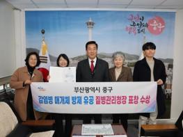 부산 중구는 2025년 12월 3일 경기도 수원시 소재 수원컨벤션센터에서 개최한 ‘2025년 감염병 매개체 관리 평가회’에서 방제 유공으로 질병관리청장 표창을 수상했다. 이번 상은 해충 민원 발생 지역에 민
