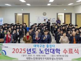 대전 대덕구는 18일 대한노인회 대덕구지회에서 ‘2025년 노인대학 수료식’을 열고, 교육과정을 이수한 어르신 80명을 축하했다.이날 수료식에는 어르신들을 비롯해 대한노인회 대덕구지회 관계자, 지역 어