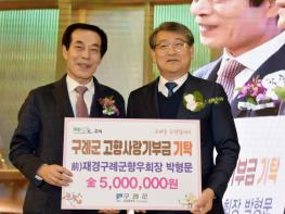 구례군은 ㈜녹십초 회장이자 제16대 재경구례군향우회장을 역임한 박형문 회장이 고향사랑기부금 500만원을 구례군에 기탁했다고 밝혔다.박형문 회장은 지난 2023년 고향사랑기부금 500만원 기부, 구례장학