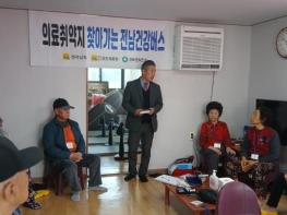 진도군은 의료기관에 대한 접근성이 낮은 농어촌 지역 주민들의 건강관리를 위해 순회진료 사업의 하나로 ‘찾아가는 전남건강버스’를 통해 맞춤형 의료서비스를 추진했다.진도군 보건소의 방문보건팀과 공