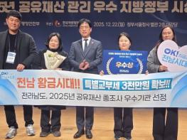 전라남도는 22일 행정안전부 주관 2025년 공유재산 우수지자체 시상에서 공유재산 총조사 분야 우수 지자체로 선정돼 우수상과 함께 특별교부세 3천만 원을 확보했다고 밝혔다. 순천시·구례군·장성군·완도군